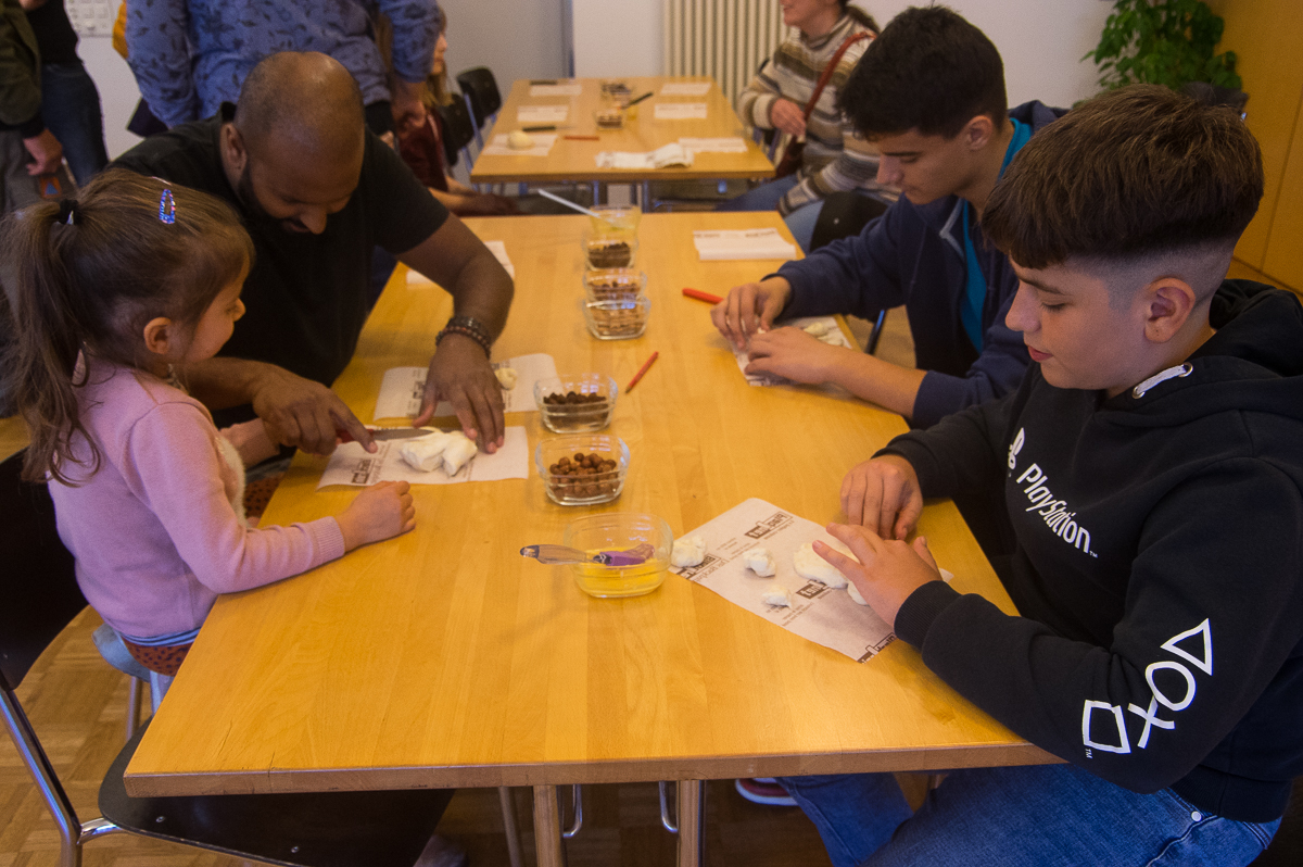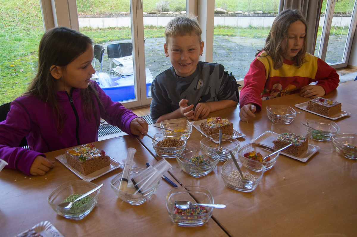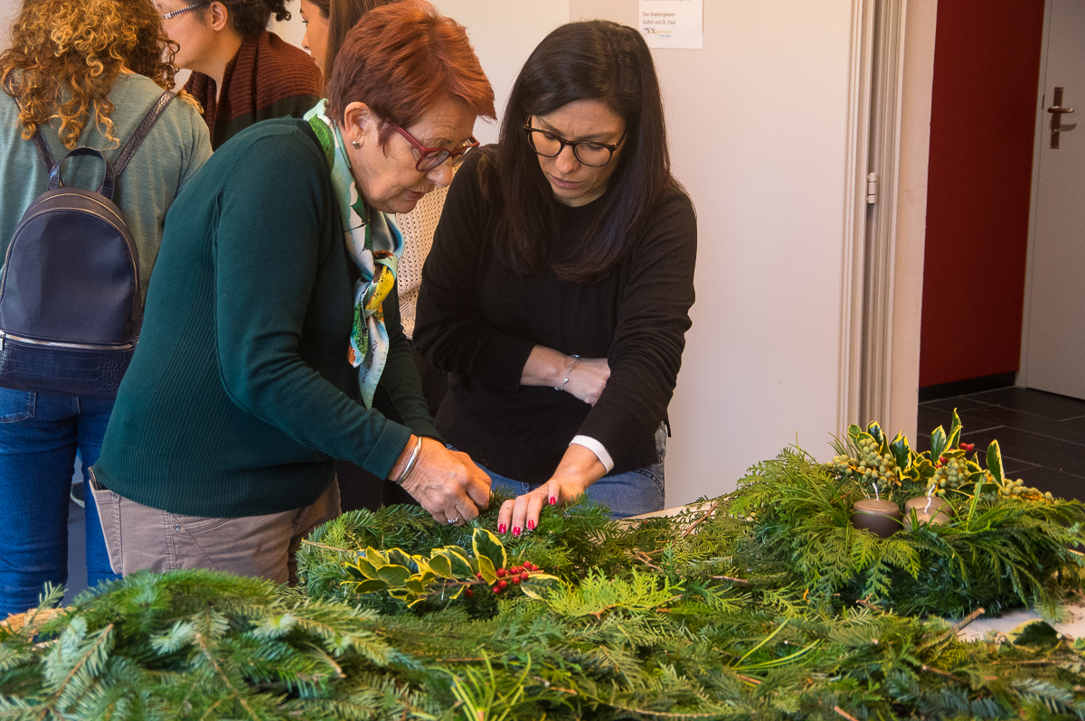 Die Adventswerkstatt öffnete um 13 Uhr im Pfarreizentrum die Tür und wurde förmlich von bastelfreudigen Kindern und Erwachsenen überrannt. Fleissige Helfer*innen hatten alle Hände voll zu tun. In gemütlicher Atmosphäre entstanden lustige Grittibänze, süss verzierte Lebkuchen, prächtige Adventskränze und andere schöne Basteleien für Gross und Klein. Die heimelige Kaffeestube lud zum Ausruhen und miteinander Plaudern ein.